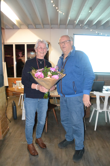 Annie van der Giessen is 40 jaar lid van de N.B.v.V. Op 30 januari 2025 heeft Annie het speldje N.B.v.V. in ontvangst mogen nemen. De speld en de daarbij horende bosbloemen werden uitgereikt door Lex Kaptein, voorzitter v.v. De nachtegaal Heerjansdam/Zwijndrecht.