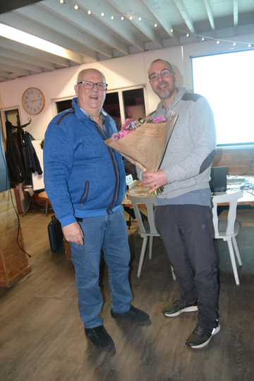 Johan Los is 25 jaar lid van de N.B.v.V. Op 30 januari 2025 heeft Johan het speldje N.B.v.V. in ontvangst mogen nemen. De speld en de daarbij horende bosbloemen werden uitgereikt door Lex Kaptein, voorzitter v.v. De nachtegaal Heerjansdam/Zwijndrecht.