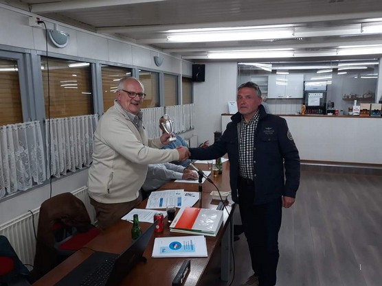 Door deze aantal nieuwe leden heeft Walter Rötgers uit handen van de districtsvoorzitter Lex Kaptein de beker in ontvangst mogen nemen.